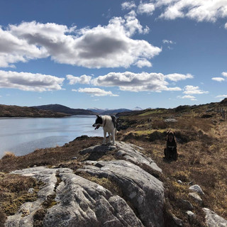 For me Freyja and Bolt are the beach Goldens and Wisp, Rock and Glen are the adventurous explorers, Marjorie accompanied me on all of the walks. It was such a delight having four dogs on mountain and moor scouts and three dogs for running on dreamlike white sand beaches with turquoise waters and the salty breeze from the open sea.